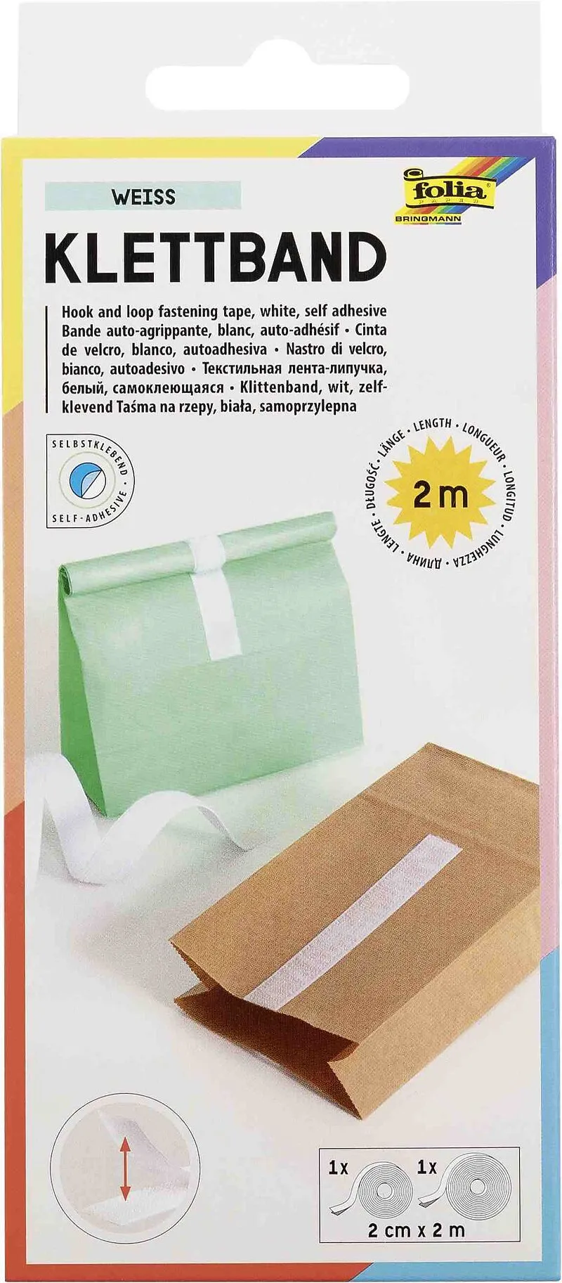 Folia Klettband selbstklebend, 20mmx2m, 1 Band, weiß