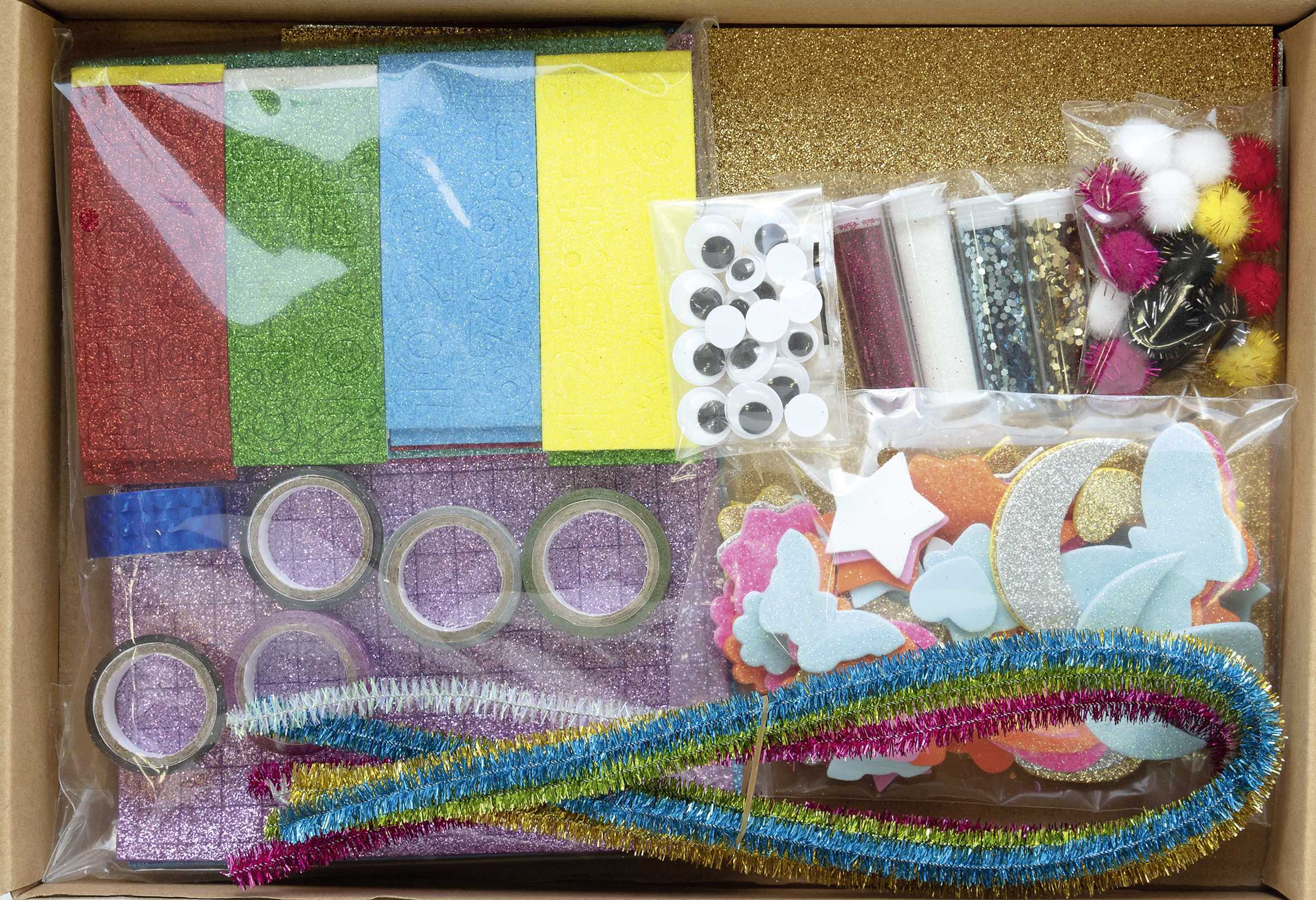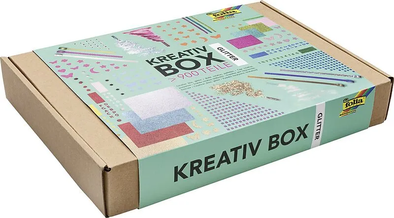 Kreativ Box Glitter Bunter Materialmix für phantasievolles und kreatives Basteln und Dekorieren.Inhalt:20x Wackelaugen, verschiedene Grössen4x Glitterkarton 17,4 x 24,5 cm, 300 g/m2, farbig sortiert4x Glittermoosgummi, 10 x 14,5 cm, farbig sortiert75x Moosgum...