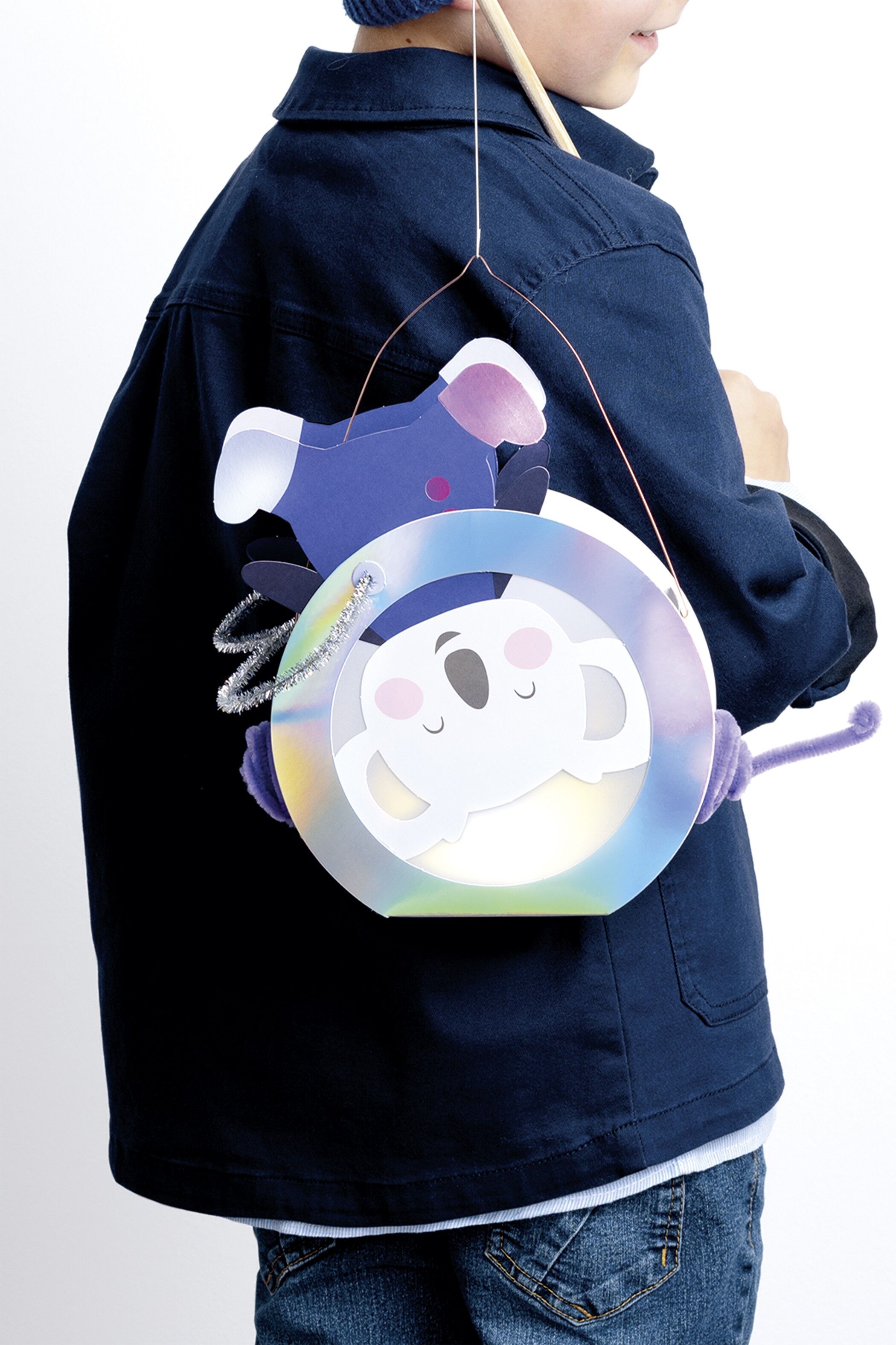 Bastelset für 1 Laterne mit zwei Motiven kombinierbar; Einhorn und/oder Regenbogen; inkl. Anleitung; Laternen-Rohling, rund; metallic irisierend, 190 mm; 2 x Stanzbogen 4/4-farbig bedruckt; mit Veredelung, 23 x 33 cm; 2 x Transparentpapier-Zuschnitte, rund wei...