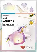 Bastelset für 1 Laterne mit zwei Motiven kombinierbar; Einhorn und/oder Regenbogen inkl. Anleitung; Laternen-Rohling, rund, irisierend pink, 190 mm; 1 x Stanzbogen 4/0-farbig bedruckt; mit Veredelung, 23 x 33 cm; 2 x Transparentpapier-Zuschnitte, rund weiß, 16...