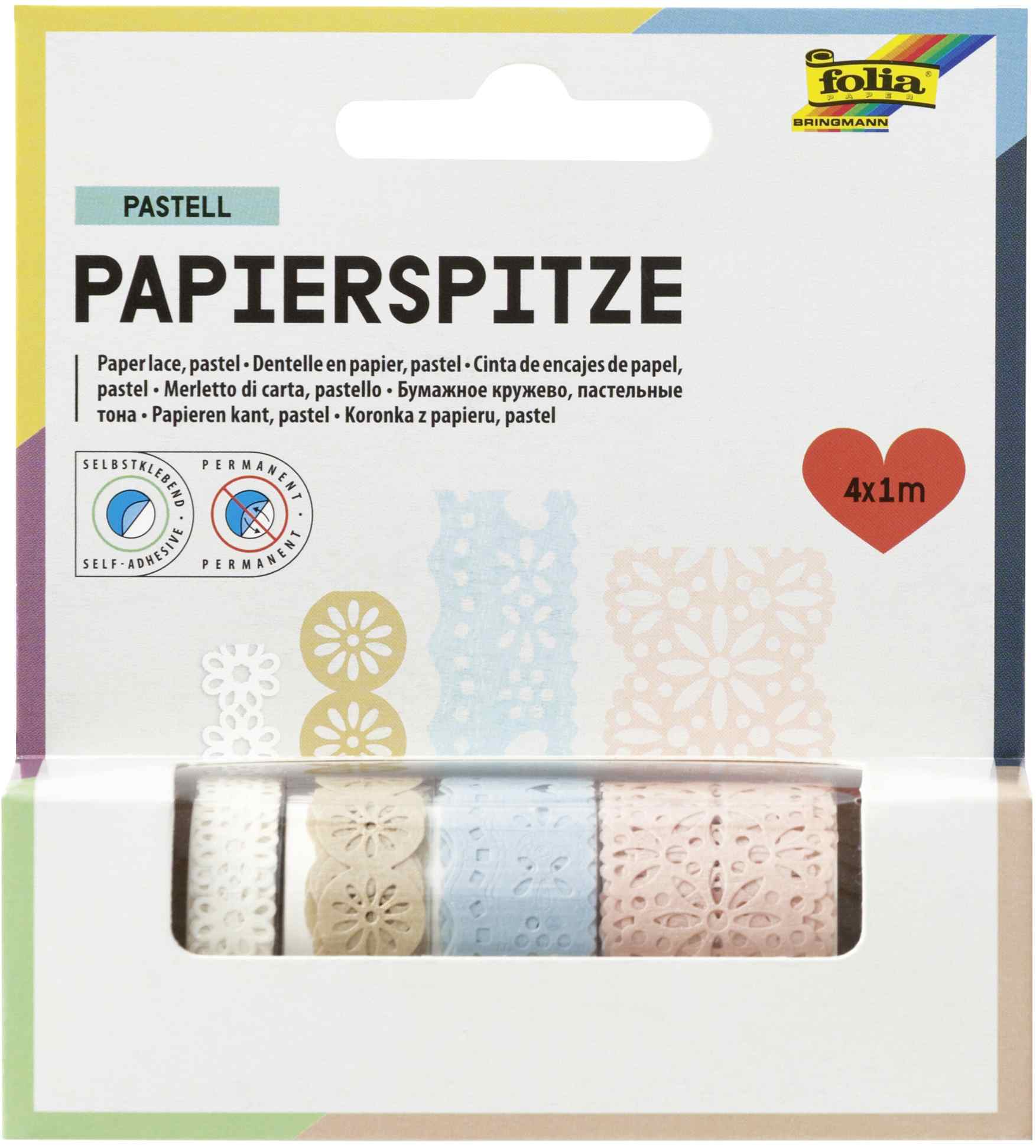 Gesamtlänge: 4 x 1 m selbstklebendweiß 1 m x 8 mmnatur 1 m x 14 mmhellblau 1 m x 17 mmros 1 m x 23 mm Ob auf Geschenken, Karten oder als Deko - mit den romantischen Papierbordüren sieht einfach alles spitze aus. Nachhaltig in einer Papierschachtel verpackt las...