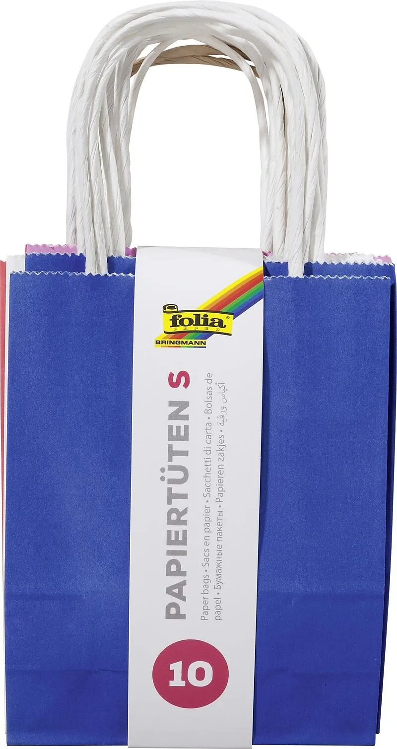 Papiertüten aus Kraftpapier, 12x5,5x15cm, 10 Stück farbig sortiert, Farben je 1x natur, gelb, pink, grün, je 2x weiß, rot, blau, verpackt in einem Polybeutel mit 4-farbigem Einleger, LGA tested Papiertüten aus Kraftpapier, 10 Stück, 12 x 5,5 x 15cm, farbig sor...