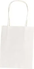 Papiertüten aus Kraftpapier, 110g/qm, 12x15x5,5cm, 20 Stück in der Farbe weiß, verpackt in einem Polybeutel mit 4-farbigem Einleger, LGA tested Papiertüten aus Kraftpapier, 20 Stück, 12 x 5,5 x 15cm, in der Farbe weiß, mit einem gedrehten Papiertragegriff, die...