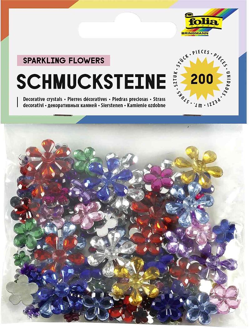 Verpackt im Polybeutel mit Reiterkarte, 4-farbig bedruckt, 200 Schmucksteine Blumen, Größen/Farben sortiert, nicht selbstklebend Schmucksteine "Blumen", 200 Stück, Größen und Farben sortiert. Packung mit verschiedenen Schmucksteinen aus Acryl. Ideal geeignet z...