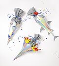 Bastelset für 1 Schultüte mit drei Motiven zur Auswahl: Hai, Space Dinos, Rakete inkl. Anleitung. 1 x Schultütenrohling, irisierend 4 x Krepppapier in 4 Farben 7 x Stanzbögen, 4/4 farbig bedruckt mit Veredelung 3 x Stanzbögen irisierender Karton 80 cm Satinban...
