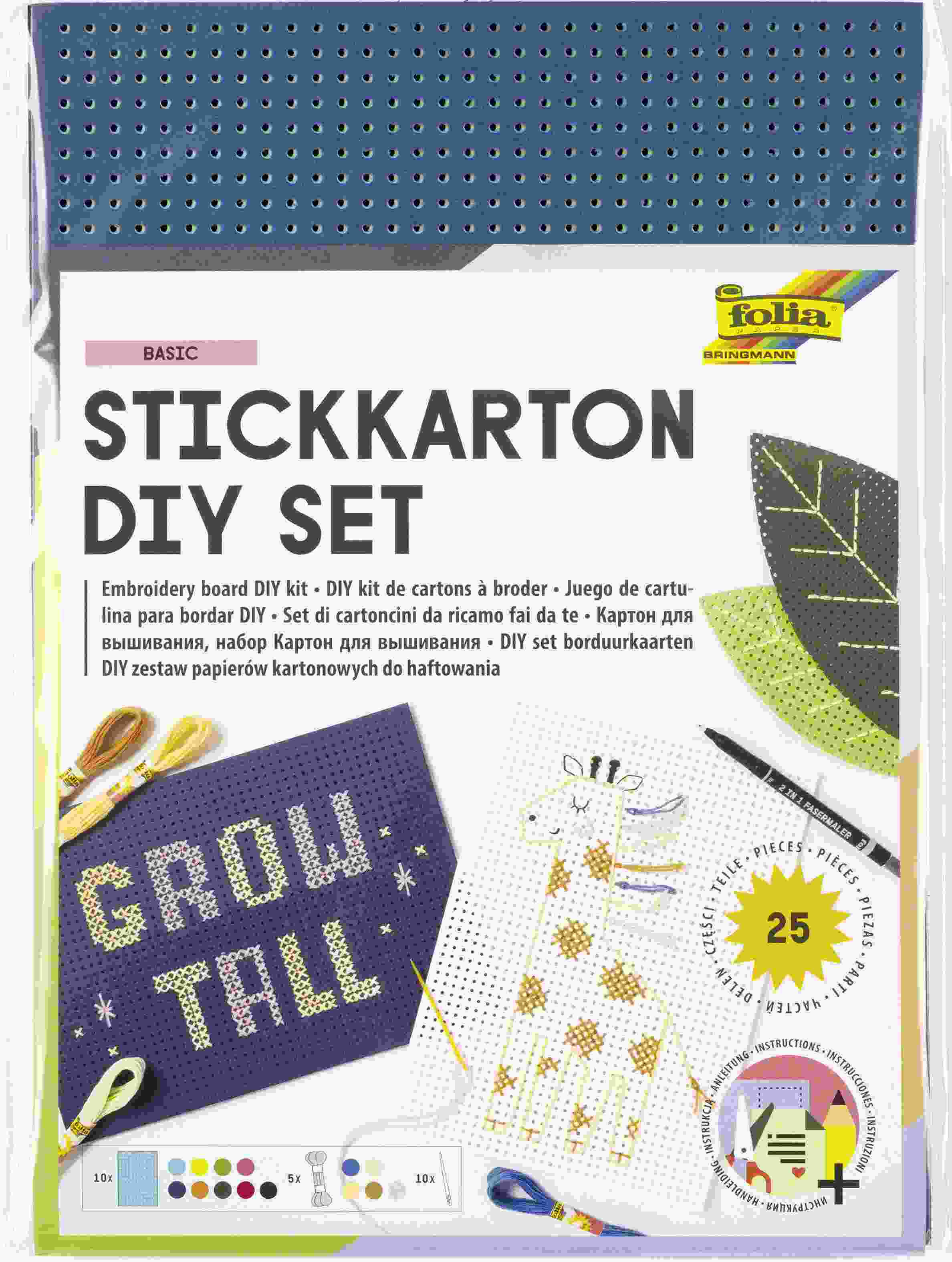 Folia Stickkarton DIY Set, 25-teilig, unbedruckt