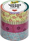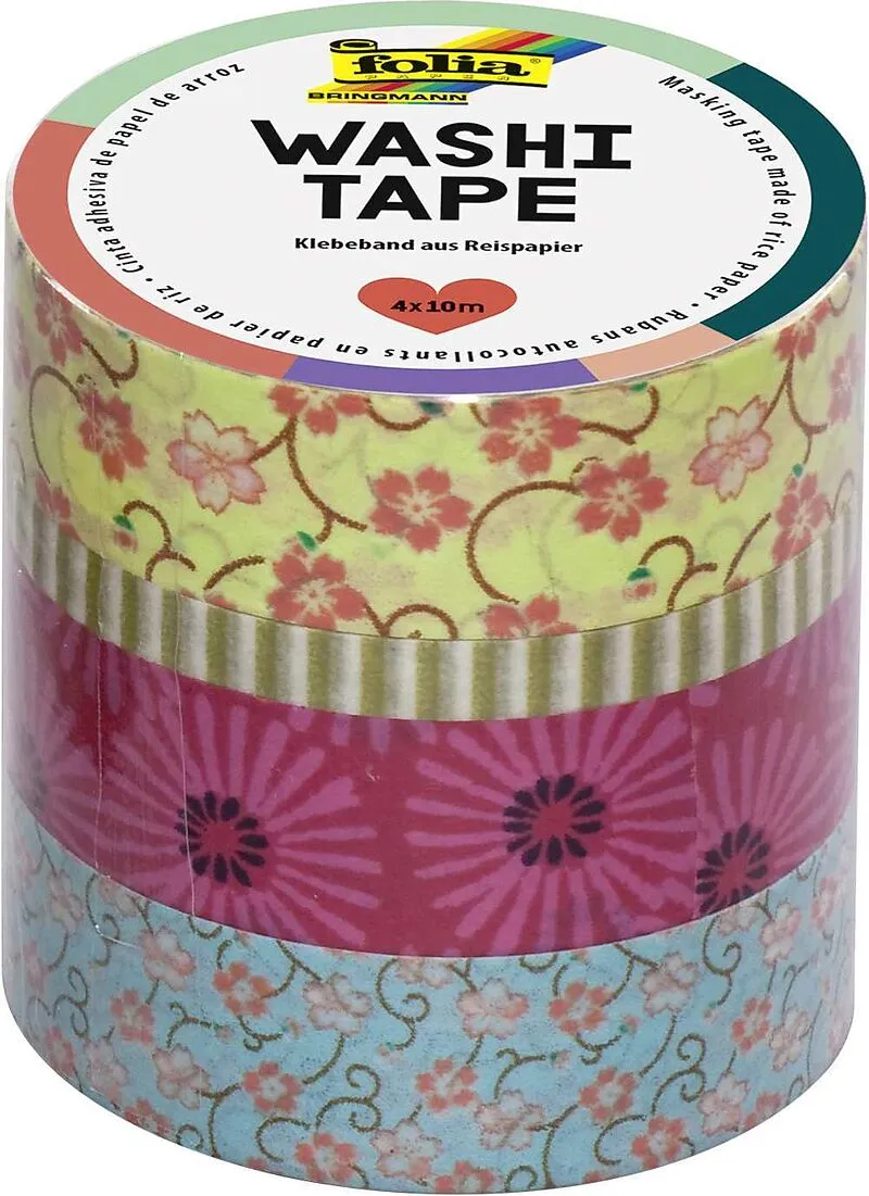 Papierklebeband Washi-Tape 4er-Set, 3 Rollen 15mmx10m und 1x 5mmx10m, farbig sortierte Motive, mit der Hand reißbar, säurefrei, eingeschweißt in Folie mit 4-farbigem Einleger Washi-Tape 4er-Set BLUMENREIGEN, 3x 15mmx10m + 1x 5mmx10m, Washi Tape ist ein leicht ...