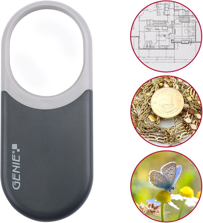 Die schwarze GENIE MP 55 ist eine praktische Taschenlupe für den vielseitigen Einsatz im Büro oder Privathaushalt und eignet sich aufgrund der kompakten Grösse auch ideal für unterwegs. Mit einer Linsengrösse von 40 x 50 Millimeter und einer zweifachen Vergrös...