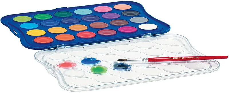 ACQUERELLI - Malkasten Wassermalkasten mit Vertiefung für eine einfache und saubere Anwendung, 24 Farben inklusive Synthetikpinsel. Eine neue Auswahl von leuchtenden Farben mit hoher Deckkraft. Zwei innovative Details sind in dem Farbkasten versteckt: Zum ein...