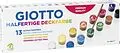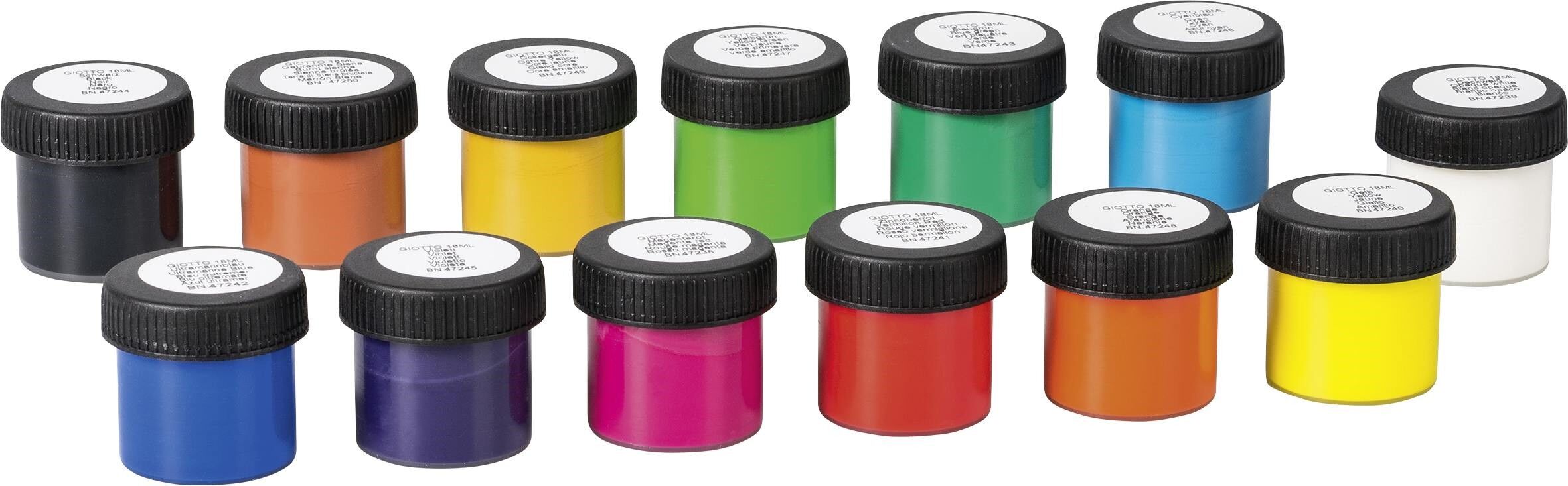 Farbe: blaugrün, cyanblau, ultramarinblau, gebrannte Siena, gelb, gelbgrün, ockergelb, magentarot, orange, zinnoberrot, schwarz, violett, deckweiß; Inhalt: dickflüssige Farben in Bechern 18 ml; 13 Farben; leicht abwaschbar, wisch- und radierfest, für viele Mal...