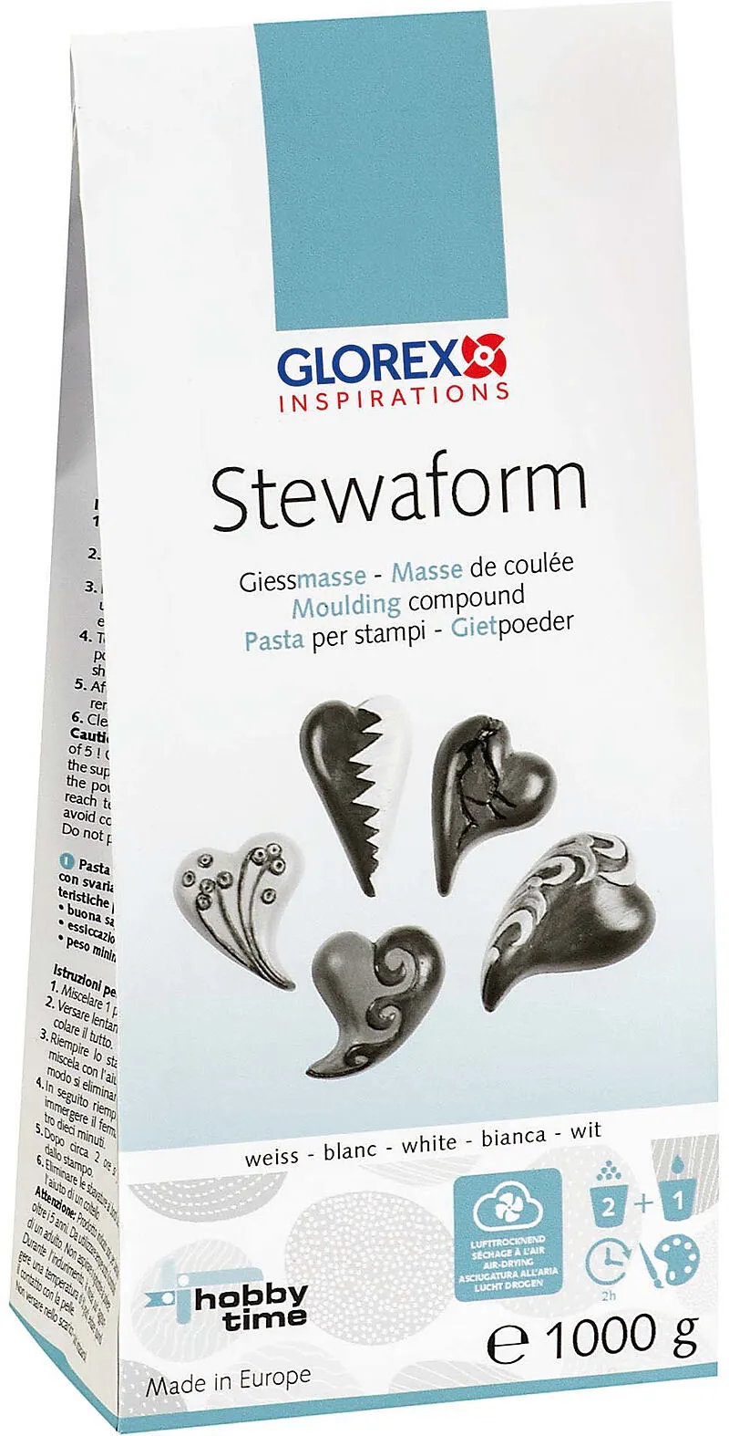 Giessmasse Universell verwendbare, weisse, preiswerte Giessmasse. Mischverhältnis Giessmasse : Wasser = 2 : 1. Durch den höheren Wasseranteil weisen die getrockneten Gegenständen ein niedriges Gewicht auf. Ausgehärtete Gegenstände weisen eine glatte Oberfläch...