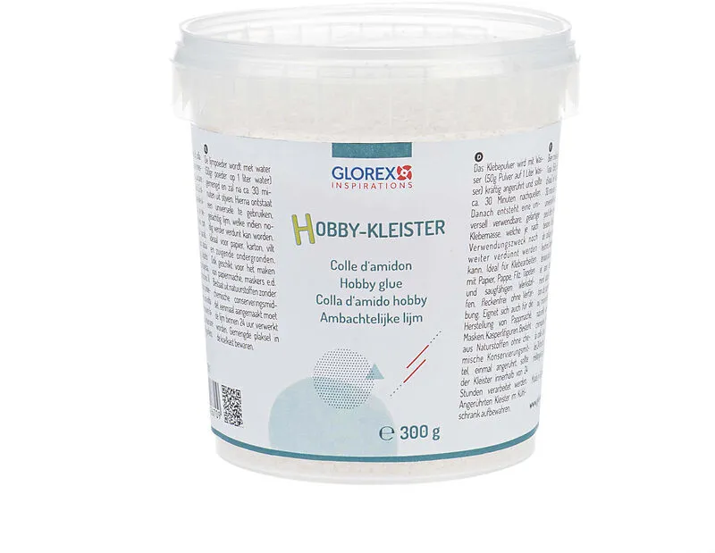 Hobby Kleister Universell verwendbare, gelartige Klebemasse. Ideal für Klebearbeiten mit Papier, Pappe, Filz, Tapeten und saugfähigen Werkstoffen. Eignet sich auch für die Herstellung von Pappmaché. Besteht aus Naturstoffen ohne chemische Konservierungsmittel...
