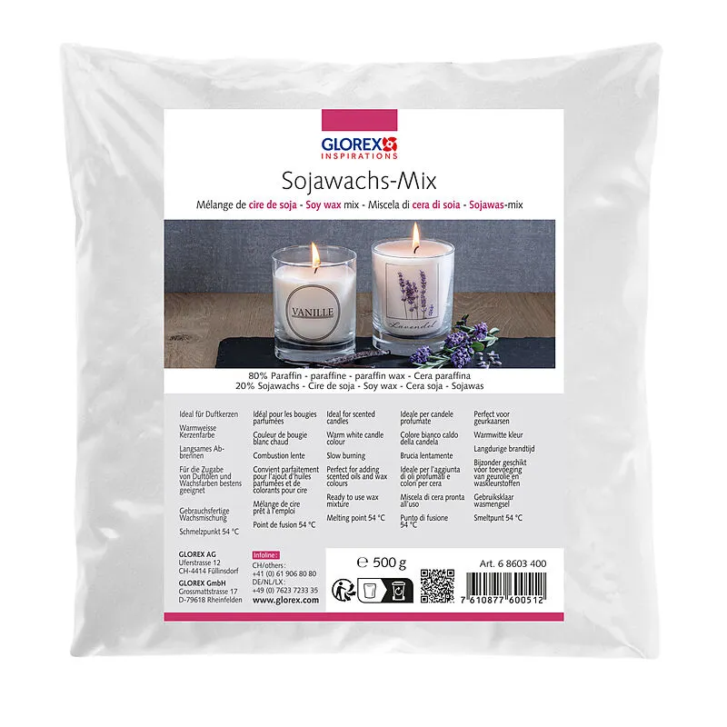 Soja Wachs verfügt über eine warmweisse Kerzenfarbe. Es brennt langsam und ist eine gebrauchsfertige Wachsmischung. Der Schmelzpunkt liegt bei 54°C.