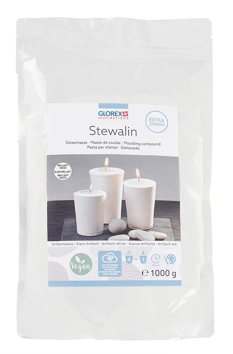 Stewalin Hochwertige, speziell weisse Figurengiessmasse zum Giessen von Figuren und Reliefs aller Art. Mischverhältnis Giessmasse: Wasser = 4 : 1. Stewalin zeichnet sich durch eine hohe Abformgenauigkeit, eine schnelle Aushärtung (30 Minuten), mühelose Entfor...