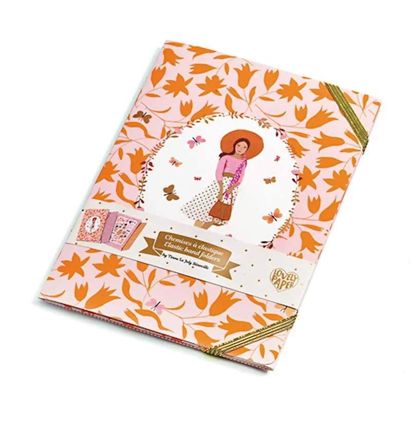14.5x21cm Set mit 2 schönen Mappen die mit Gummiband an den Ecken verschlossen werden. Perfekt um lose Blätter sauber zu verstauen.