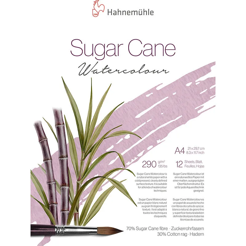 SUGAR CANE - Aquarellblock Der Sugar Cane Watercolour Block von Hahnemühle wird aus schnell nachwachsenden Zuckerrohrfasern hergestellt und steht für eine besonders ressourcenschonende Papierproduktion. Mit einem Flächengewicht von 290 g/m² eignet sich das Pa...