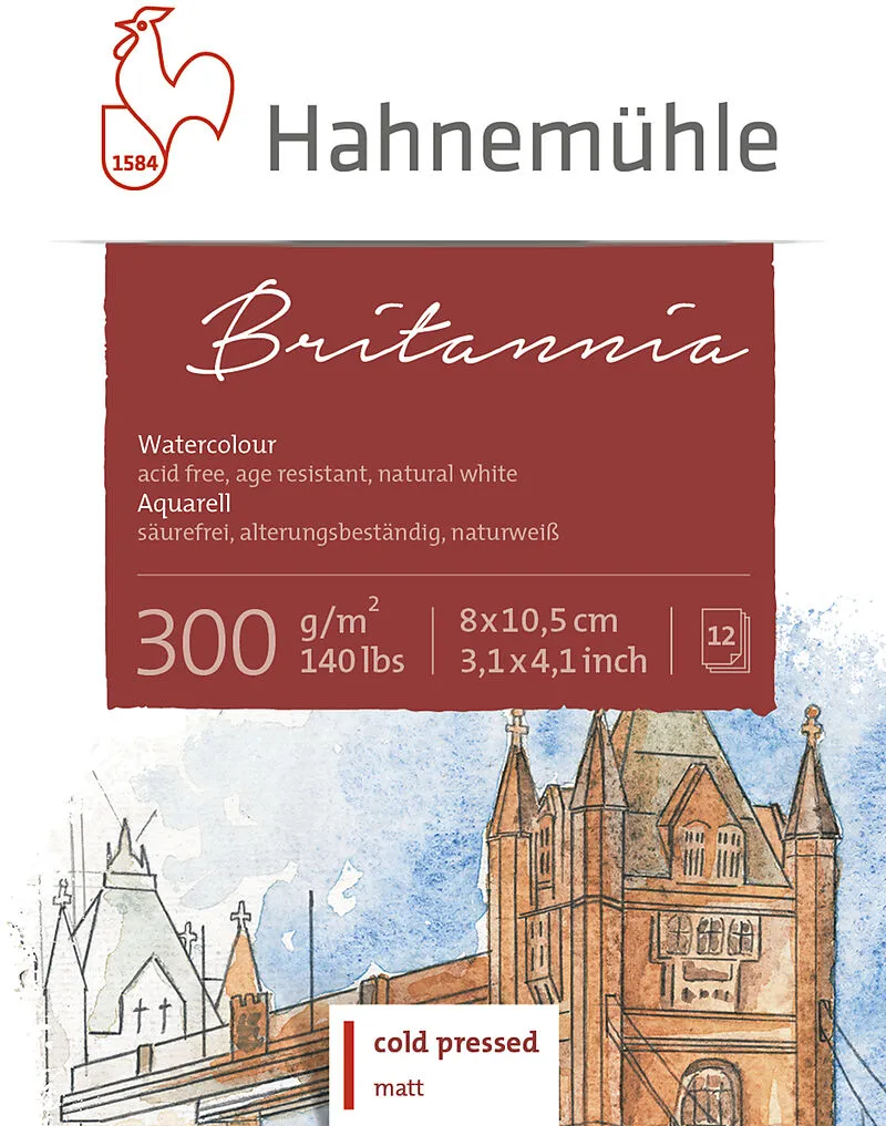 BRITANNIA - Aquarellblock Der Miniblock Britannia von Hahnemühle bietet auf kleinem Format die gleiche hochwertige Papierqualität wie die grossen Britannia Blöcke. Mit 300 g/m² ist das Papier stabil genug für Aquarell-, Gouache- und Mixed Media Techniken, und...