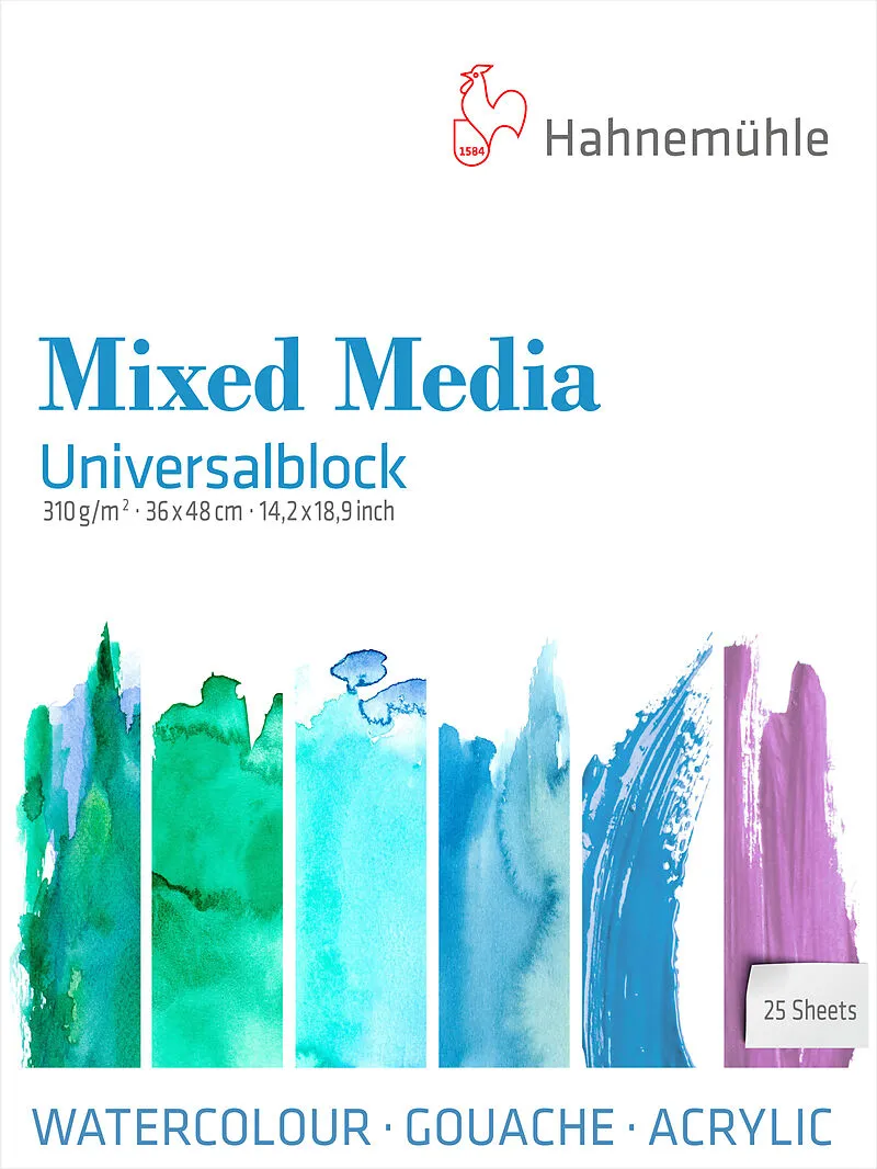 Universalblock Die Universalblöcke von Hahnemühle bieten mit 310 g/m² besonders stabiles Papier für vielseitige kreative Techniken, von Aquarell über Gouache bis Mixed Media. Die fein strukturierte Oberfläche sorgt für gleichmässige Farbaufnahme und intensive...