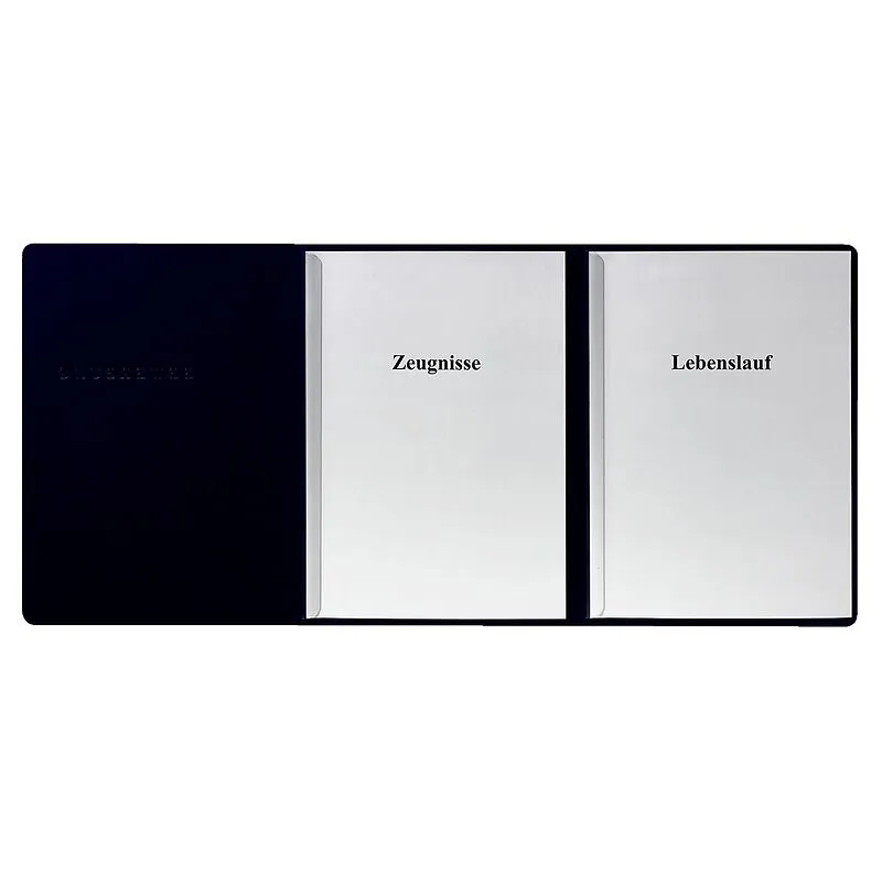 Recycling-Karton-Bewerbungsmappe A4 3tlg. RC-Karton schwarz. - Karton-Bewerbungsmappe A4 3tlg. RC-Karton schwarz - Bewerbungsmappe mit 2 transparenten Klemmschienen und Ausstanzungen zum Befestigen des Anschreibens. Mit Prägung Bewerbung - Werkstoff: Karton - ...