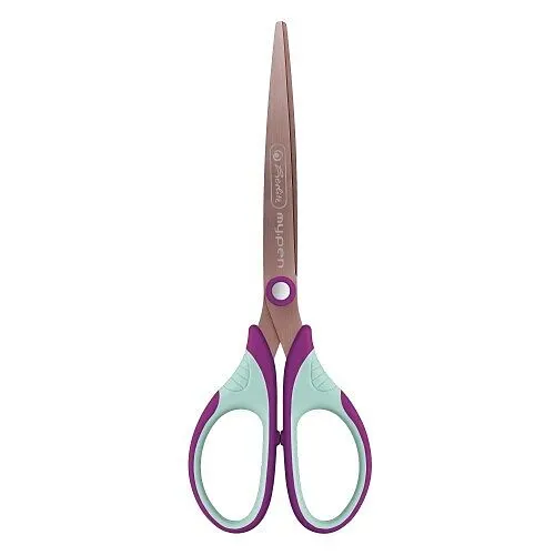Schere my.pen; Ergonomischer Griffbereich durch Materialmix; Material Stahl/Kunststoff; Farbige Scherenblätter; Farbe lila/minze.