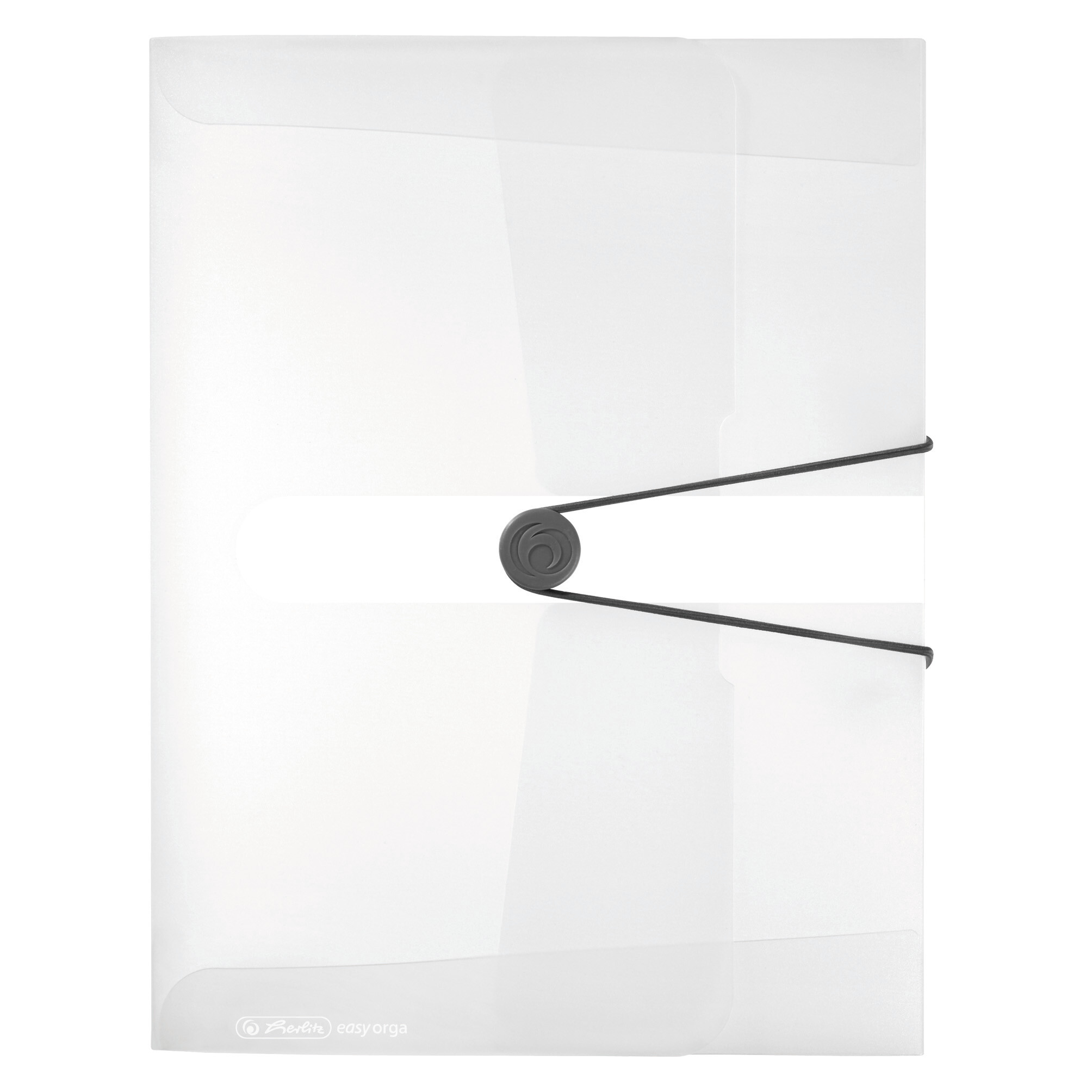 PP-Folie mit Design-Aufdruck, Rückenbreite 4 cm, Gummizug, rund mit Verschlussknopf, aufgeklebtes Rückenschild, Farbe: transparent farblos, 1 Stück.