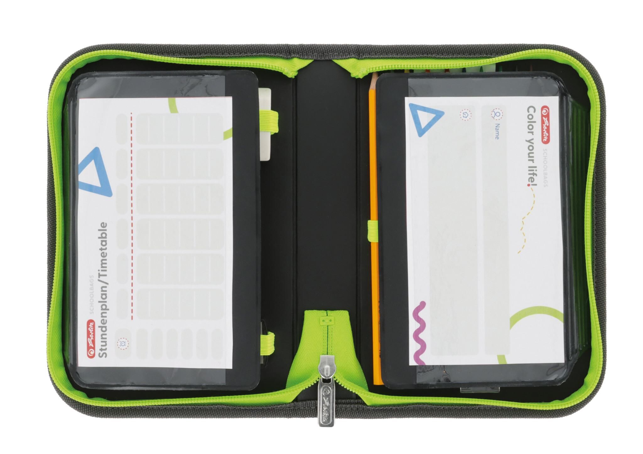 Für Schule; Etui mit 2 Klappen; mit farbigem Reißverschluss; Schlaufen in unterschiedlichen Größen; guter Überblick, farbiges Innenmaterial farbig passend zum Motiv; farbige Stifteschlaufen; Maße: 20,5 x 14 x 3,8 cm; Material: Polyester; Befüllung: mit FSC zer...