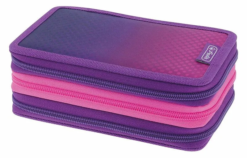 für Schule; Uni oder Beruf; 3 Klappen mit farbigem Reißverschluss; Schlaufen in unterschiedlichen Größen; guter Überblick; leichter Transport; farbiges Innenmaterial aus PVC; Maße: 19 x 11;5 x 7 cm; Befüllung: Bunstifte, Fasermaler, Bleistifte, Lineal, Dreieck...