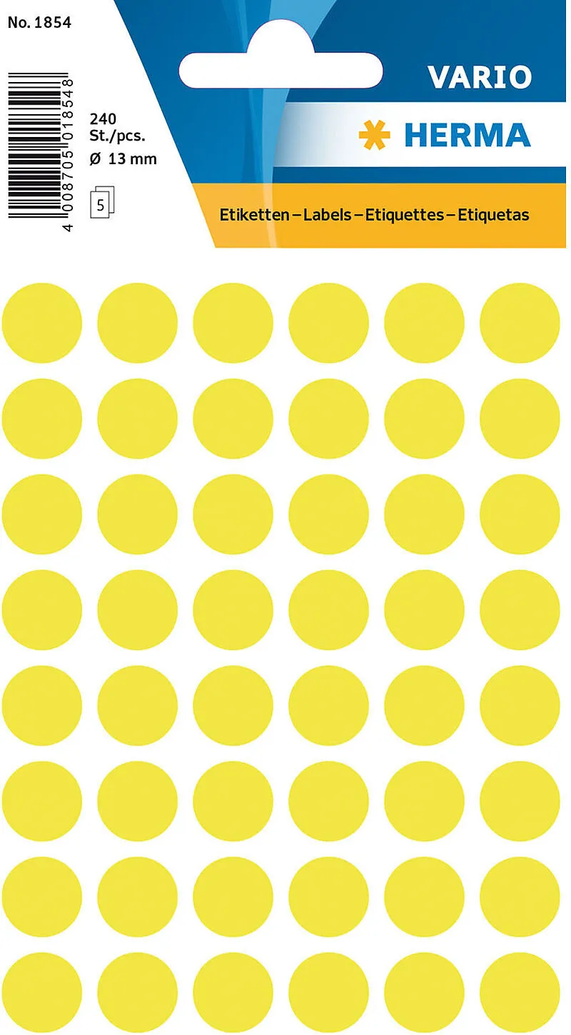 HERMA Etiketten rund 13mm 1854 leuchtgelb 240 Stück