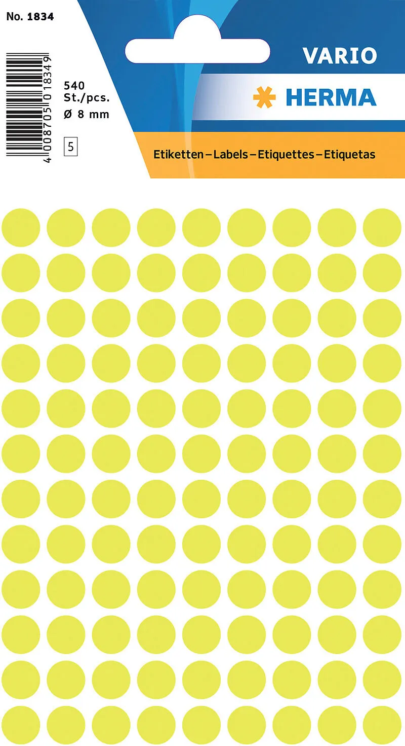 HERMA Etiketten rund 8mm 1834 leuchtgelb 540 Stück