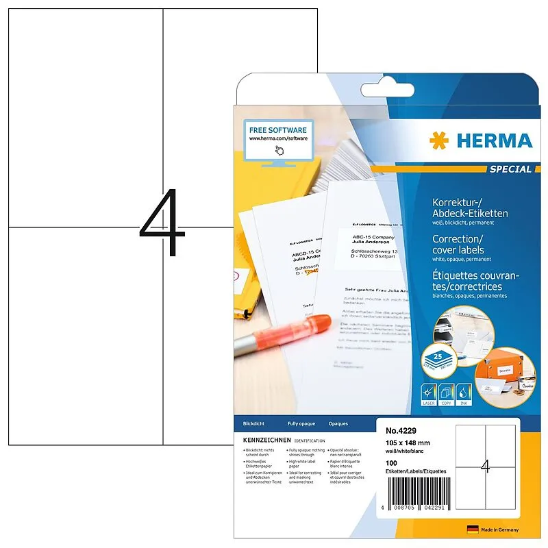 HERMA - SPECIAL - Korrektur-/Abdecketiketten Blickdichte Korrektur/Abdecketiketten, auf A4-Blättern, selbstklebend. Ideal zum Überkleben, Abdecken und Korrigieren von unerwünschten oder fehlerhaften Texten und Bildern oder auf farbigem Untergrund. Absolut dec...