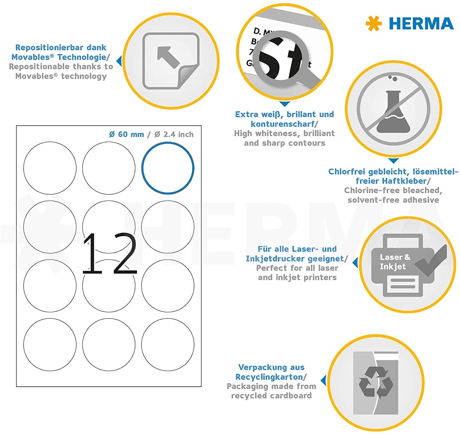 Etiketten wiederablösbar Selbstklebende Etiketten auf A4-Blättern. Mit Movables®-Technology: sicher haftend auf allen glatten, trockenen, unbeschädigten und staubfreien Flächen, rückstandsfrei wieder abziehbar ohne den Untergrundzu beschädigen, problemlos rep...