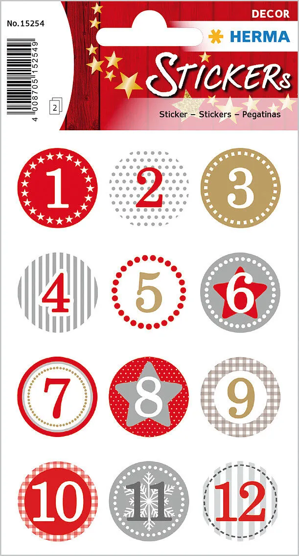 HERMA Sticker Adventskalender 15254 bunt 24 Stück/2 Blatt