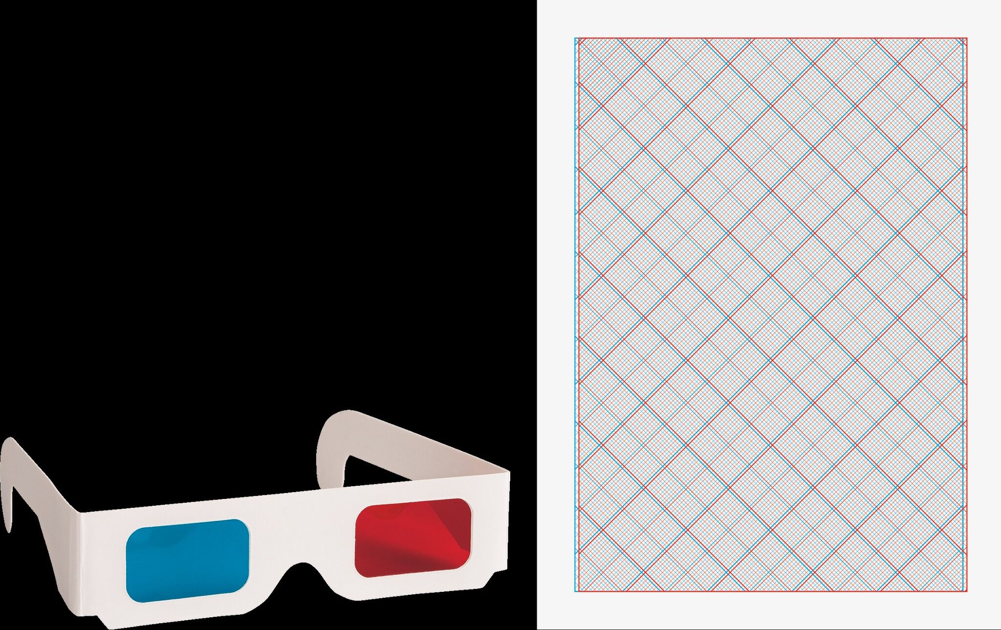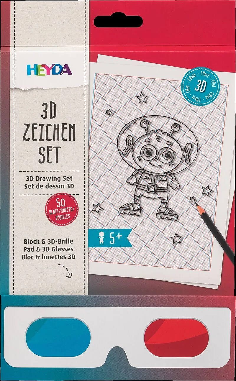 Inhalt: Block mit 50 Blatt, zweifarbig kariert, und 3D-Brille