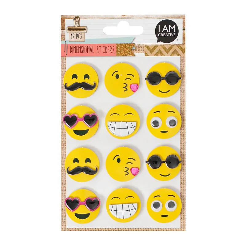 Stickers Die zauberhaften Stickers zeichnen sich durch ihre Vielseitigkeit aus. Zum Set gehören 12 lustige Emojis-Sticker. Die Smilies laden zum Verzieren und Basteln ein zum Beispiel zum verschönern von Notizbüchern, Grusskarten oder Fotos. Ideal geeignet fü...