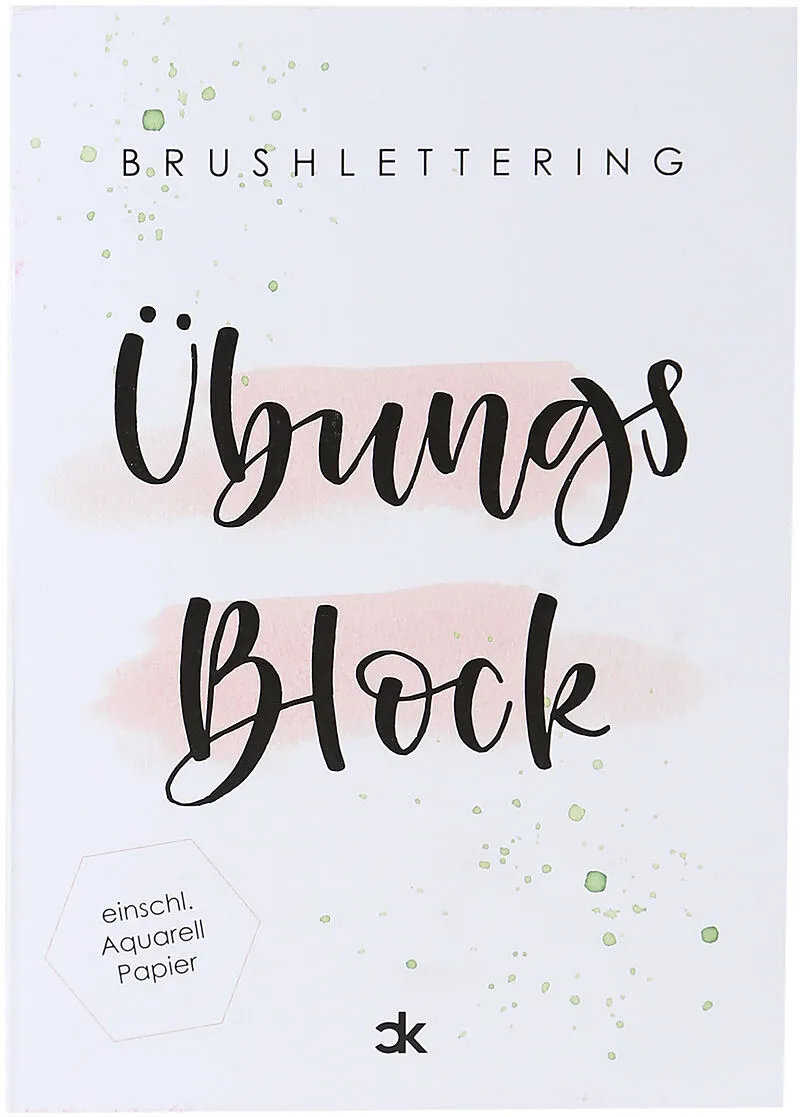 Brushlettering Übungsblock Masse: 148 x 210 mm (A5) • 50 Seiten • Inhalt: 5 Blatt weiss mit grösseren Linien 160 g/m2, 5 Blatt weiss mit kleineren Linien 160 g/m2, 20 Blatt weiss 200 g/m2, 8 Blatt Aquarellpapier 170 g/m2, 6 Blatt grün 200 g/m2, 6 Bl...