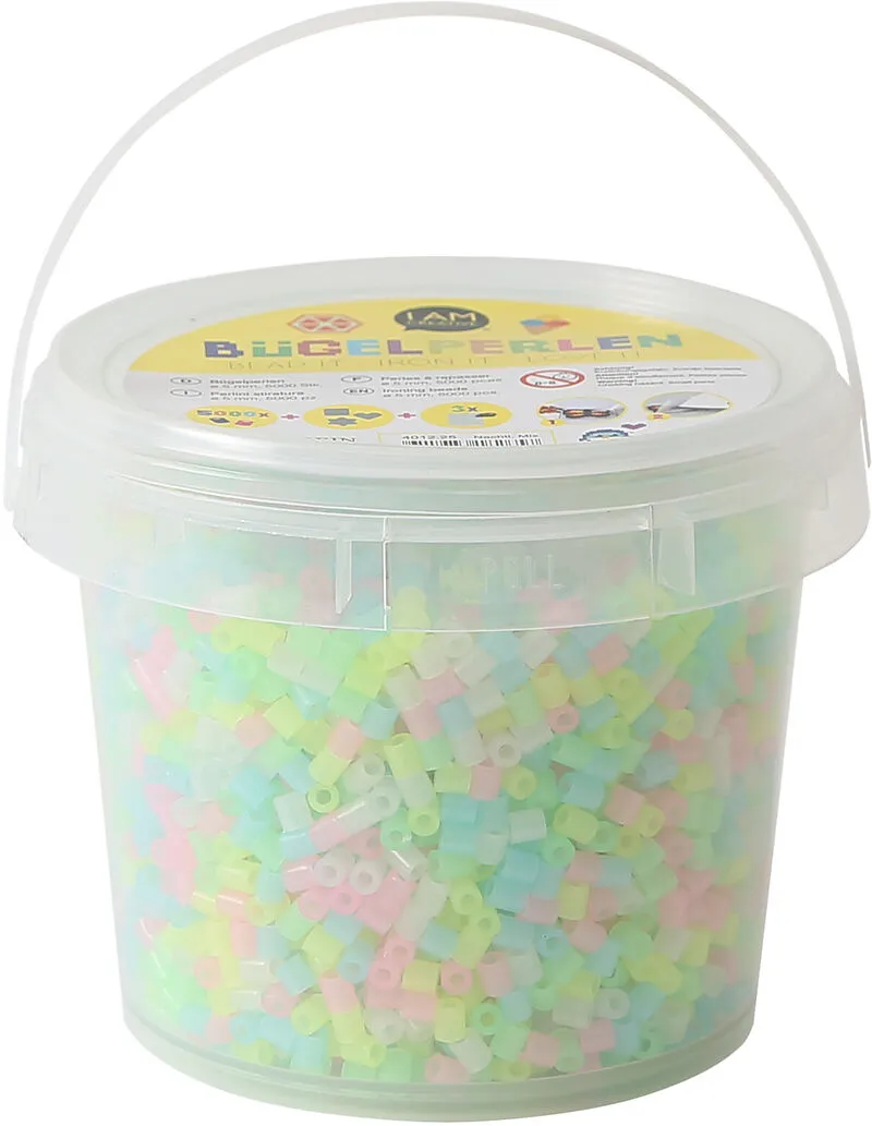 Bügelperlen nachtleuchtend Die bunten Bügelperlen werden auf einer entsprechenden Steckplatte angeordnet und anschliessend zwischen Backpapier beidseitig gebügelt. Durch die Wärme des Bügeleisens verschmelzen die Perlen aus Kunststoff miteinander und die gest...