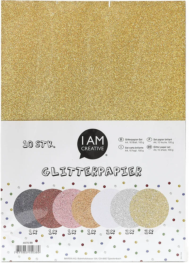 Glitterpapier Das schöne Glitterpapier zeichnet sich durch seine hohe Qualität aus. Das Papier eignet sich sehr gut zum Basteln in der Schule oder Zuhause. Mit dem glänzenden Papier kann man zauberhafte Geschenke kreieren, mit einem Stanzer lustige Motive aus...