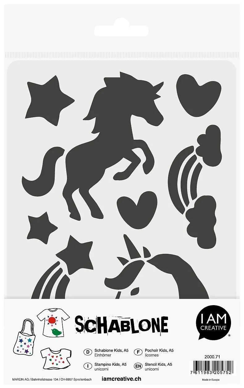 I AM CREATIVE Schablone 2000.71 Kids A5, Einhörner