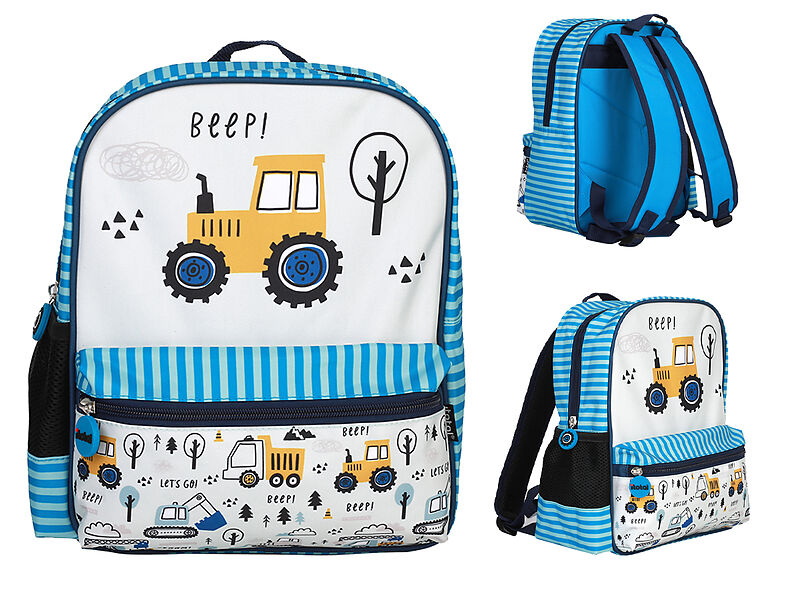 Niedlicher Kinder Rucksack mit Lkw-Motiv. In der praktischen Grösse von 24x30x11cm hat es genügend Platz für alle wichtigen Utensilien.