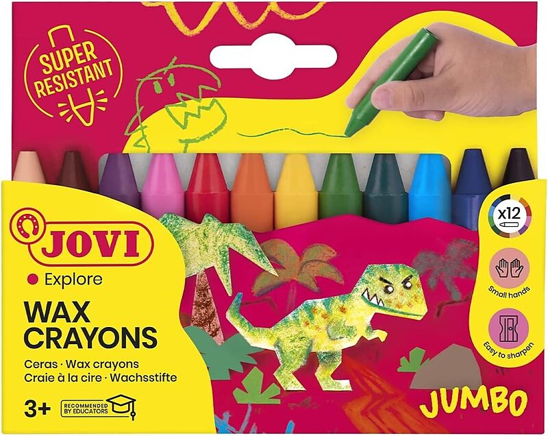 Kleine, dicke... So sind die Jovicolor-Wachsmalstifte! Geeignet für alle Altersgruppen, doch besonders als erste Wachsmalkreide für die Kleinsten. Warum? Weil sie keine Flecken hinterlassen, geruchlos sind und nicht brechen, wenn sie herunterfallen. Darüber hi...