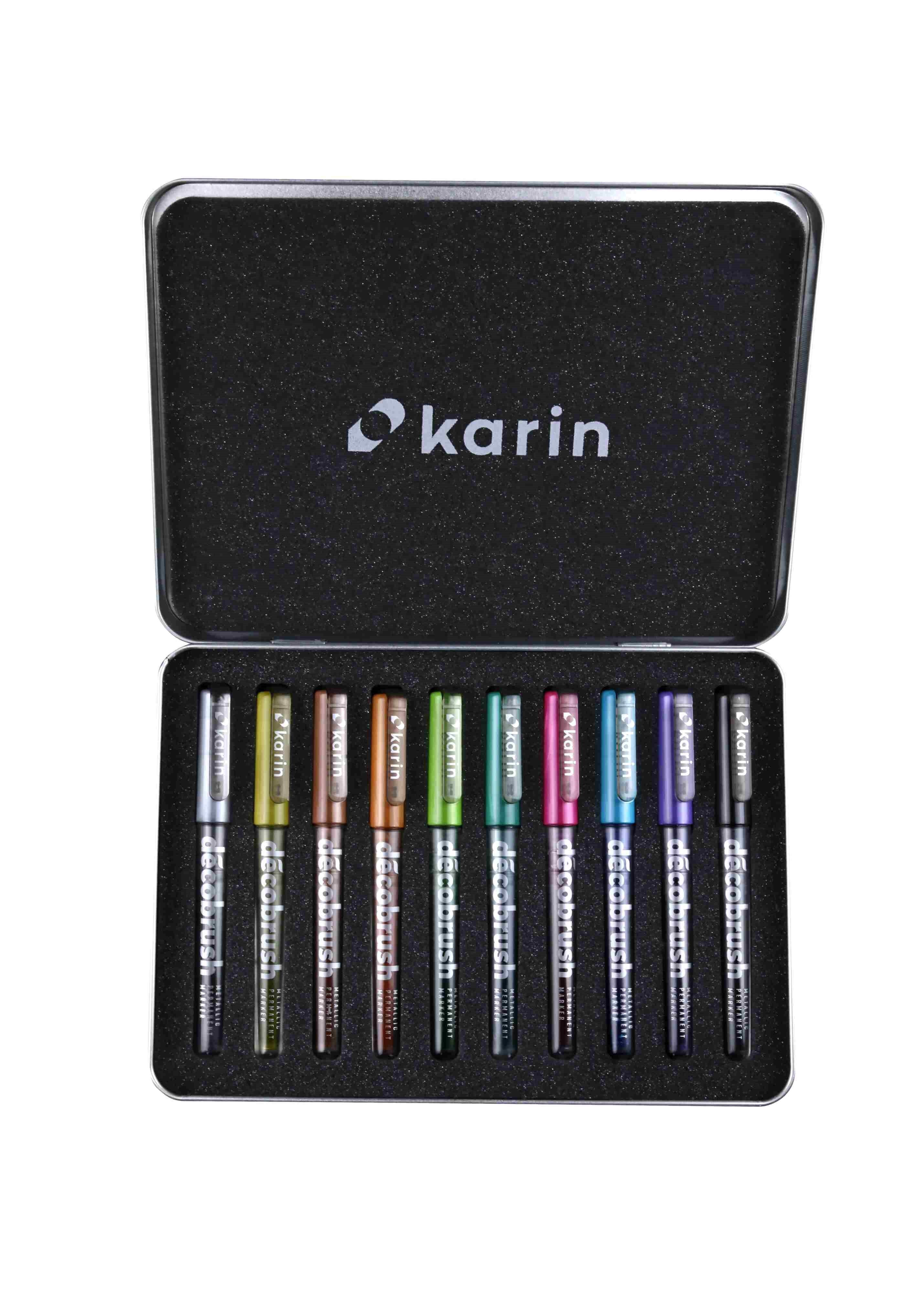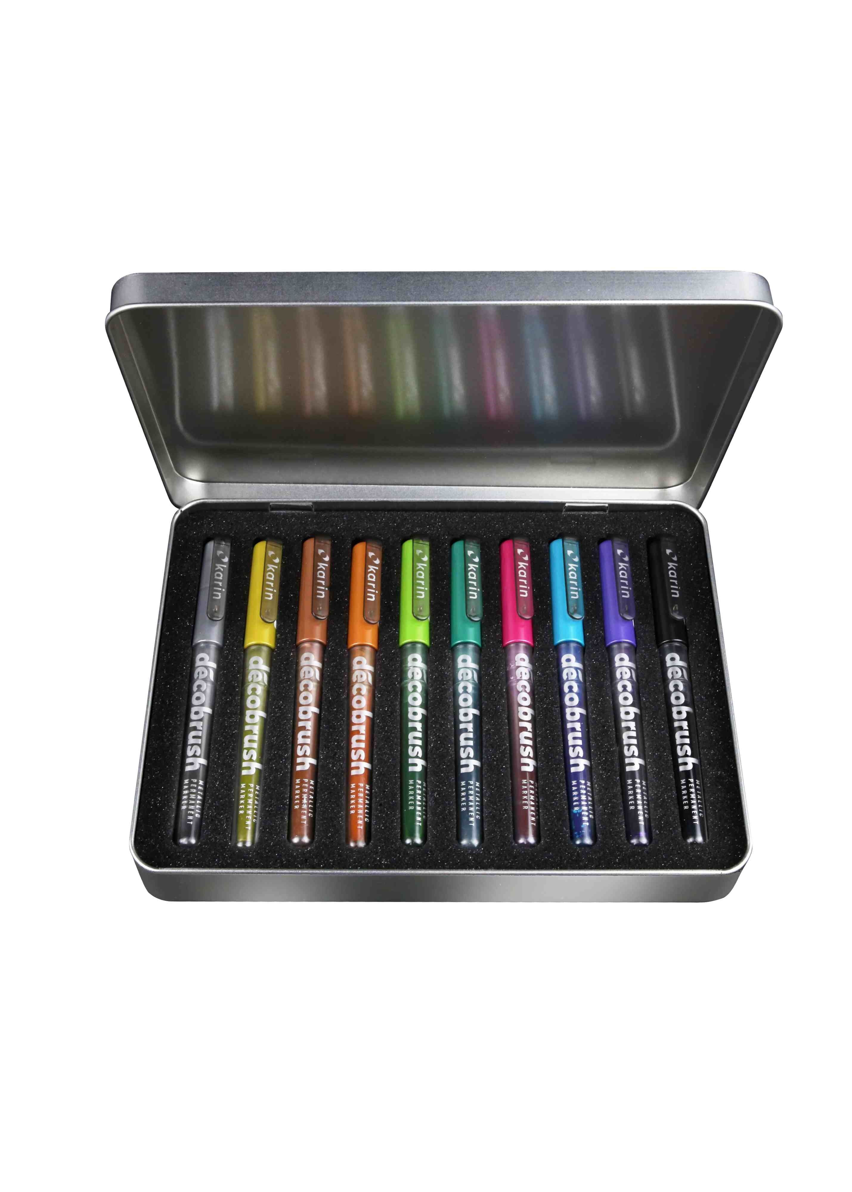 Pinselmarker Pro, 10 Stück DécoBrush Metalic-Marker enthalten 2,4 ml ungiftiger Farbe auf Basis von metallischen Pigmenten die schwarze und weisse-Oberflächen hervorragend decken. Dank der "Liquid Ink" -Technologie in der sie hergestellt wurden - im...