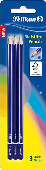 • Pelikan Bleistift 2B, Sechskant, Blau, 3er Set