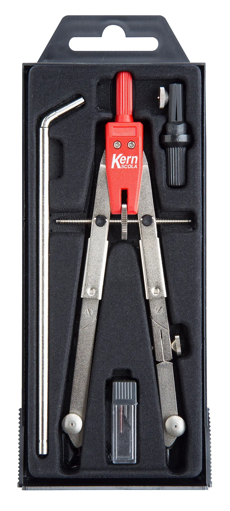 Schnellverstellzirkel Scola, mit Verlängerung Preisgünstiger Schnellverstelzirkel von Kern, für Schule oder Studium. Mit einer Basislänge von 170 mm, inklusive zwei Ersatbleiminen und einer Ersatznadel. mit Verlängerungsstange mit 2 Gelenkschenkeln und Bleiei...