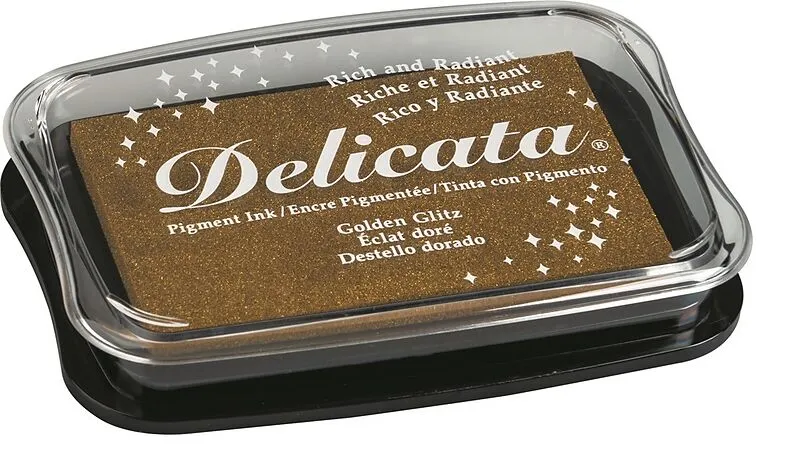 DELICATA - Stempelkissen Das Stempelkissen Delicata Metallic verfügt über schnell trocknende Pigmentfarbe auf Wasserbasis, auch für Embossingtechnik geeignet Pigmentfarbe auf Wasserbasis bedingt für Embossingtechnik geeignet dauerhaft metallischer Effekt Troc...