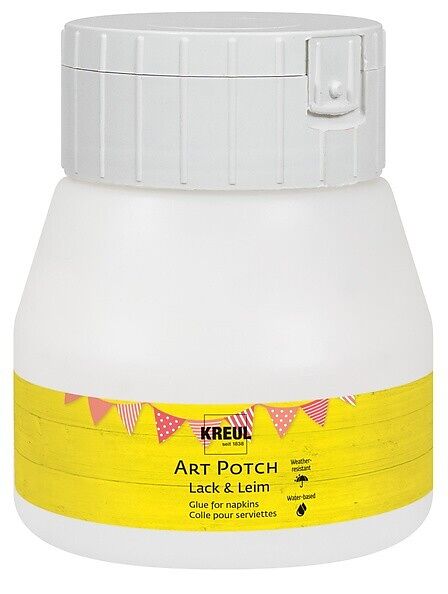Mit dem KREUL Art Potch Lack & Leim kleben Kreative und kleine Designer alles, was haften muss und veredeln Oberflächen mit Serviettenmotiven: Ob Papiere, Holzkästchen, Servietten oder Kartons Der transparente Servietten- und Dekokleber ist auf Wasserbasis und...