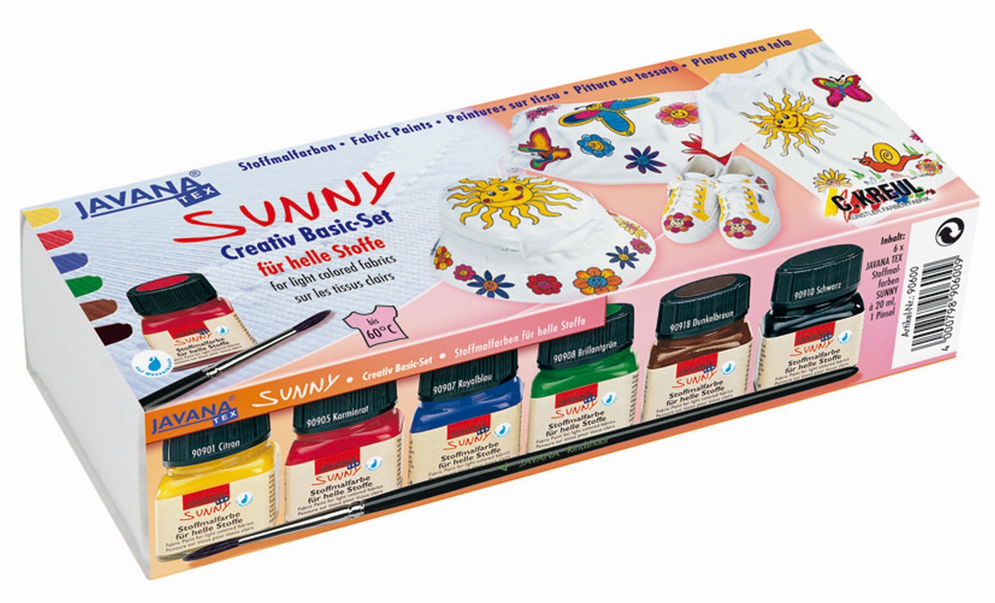 TEX SUNNY - Stoffmalfarbe Selbermacher lieben individuelle Stoffdesigns und suchen den passenden Farbton für ihre textilen Unikate. Mit den geschmeidig cremigen KREUL Javana Stoffmalfarben für helle Stoffe entstehen farbstarke oder zarte Gestaltungen auf T-Sh...