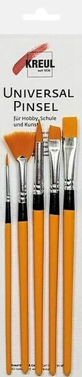 Dieses KREUL Pinsel-Set beinhaltet eine gute Auswahl an Universal- und Effektpinsel für Kreative. - Universelle Synthetikpinsel in verschiedenen Größen: flach Gr. 12, rund Gr. 2, 10 , Fächerpinsel Gr. 4, schräg Gr. 10 - Nahtlose silberfarbene Zwinge, kurzer St...