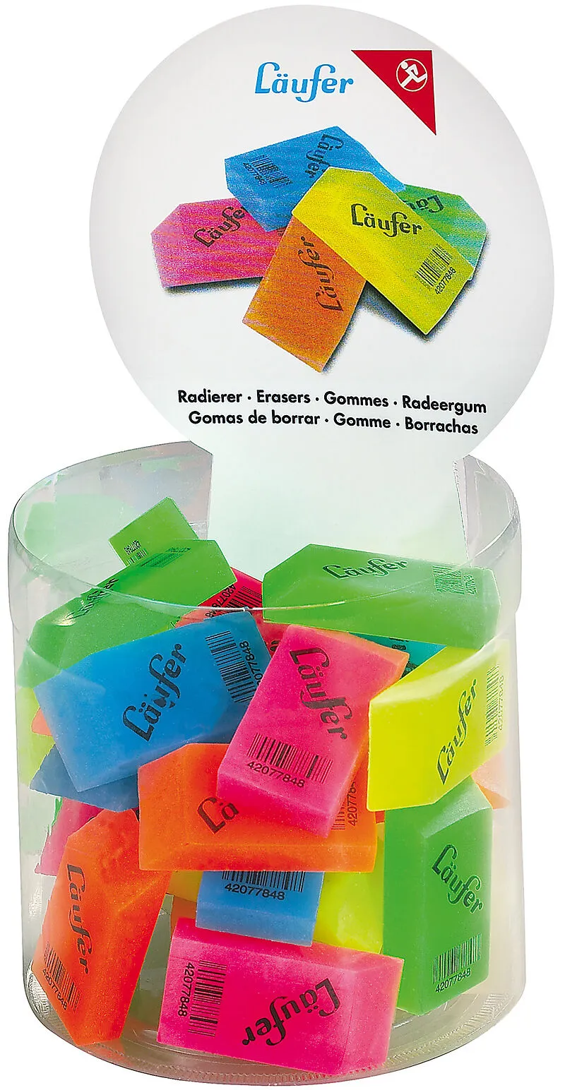 TRANSLUZENT - Radierer Ein echter Blickfang: die transluzenten Radierer von Läufer bringen Farbe auf den Schreibtisch. Es gibt sie in fünf verschiedenen Farbtönen. Transluzente, farbenfrohe Radierer in bewährter Plast-Qualität ideal für Blei- und Farbstift pr...