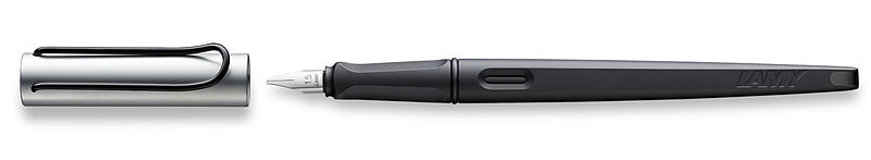 JOY - Füllhalter Der Schönschreibfüller mit Kalligraphiefeder für eine besonders schöne Handschrift. Griffsympathisch durch markante Griffmulden. Mit selbstfederndem Bronzedrahtclip. Schwarzes Softlack-Finish Kappe: Aluminium, natur eloxiert / Stahl-Bandzugfe...