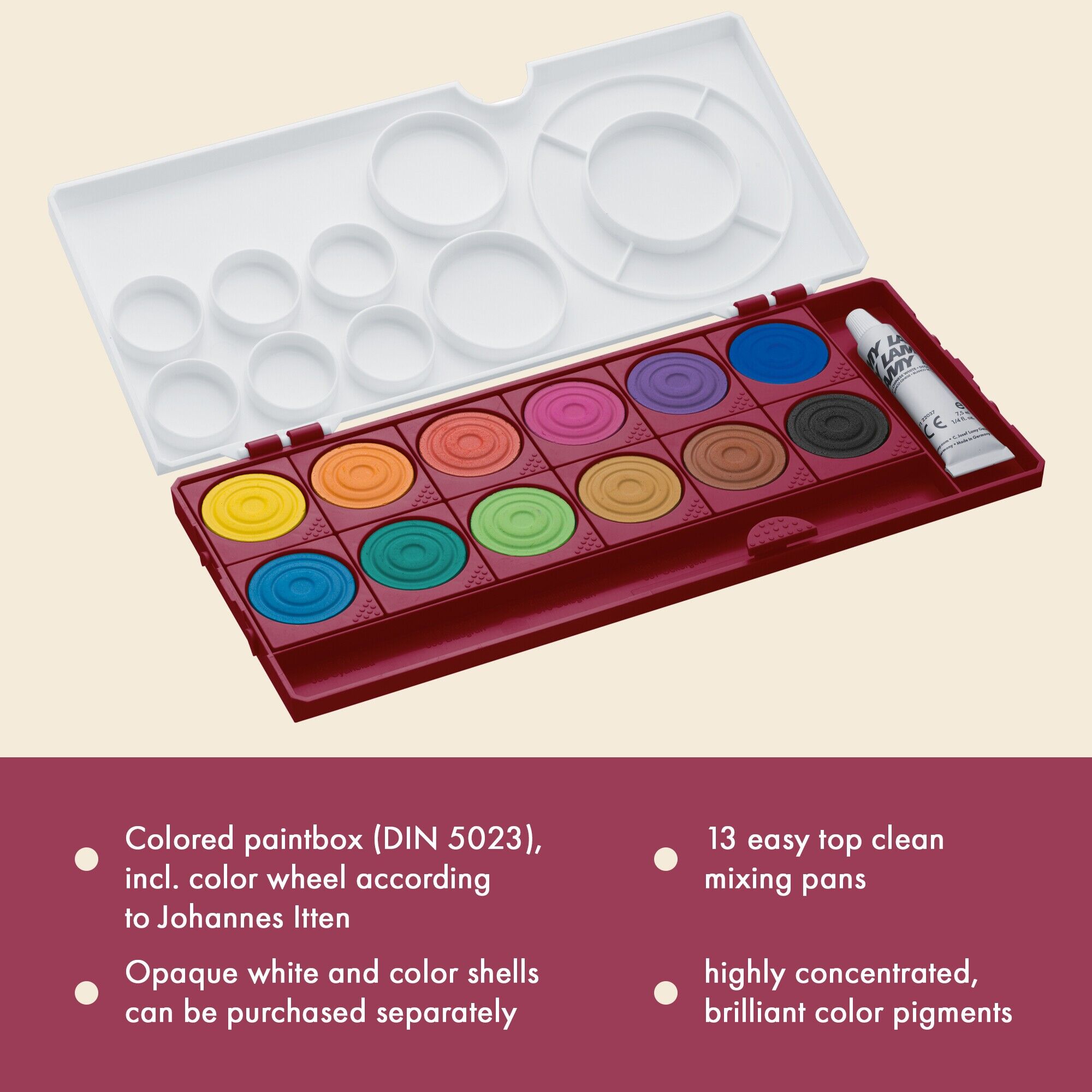 aquaplus Deckfarbkasten 12 Farben brillante Schul- & Künstlerfarben nach DIN 5023 Der aquaplus Malkasten mit 12 reinen, brillanten Farbtönen bietet hohe Deckkraft und eine ergiebige Farbqualität. Ideal für Schule und Hobby für lebendige, langlebige Ergebnisse...